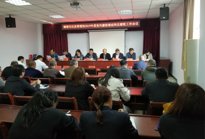 4月18日下午,市应急管理局召开2019年度党风廉政建设和反腐败工作会议,局党组书记、局长王关明出席会议并讲话,驻市工信局纪检监察组组长刘志宏安排部署2019年党风廉政建设和反腐败工作,机关全体干部职工及局属单位主要负责人及驻市工信局纪检监察组人员参加会议。