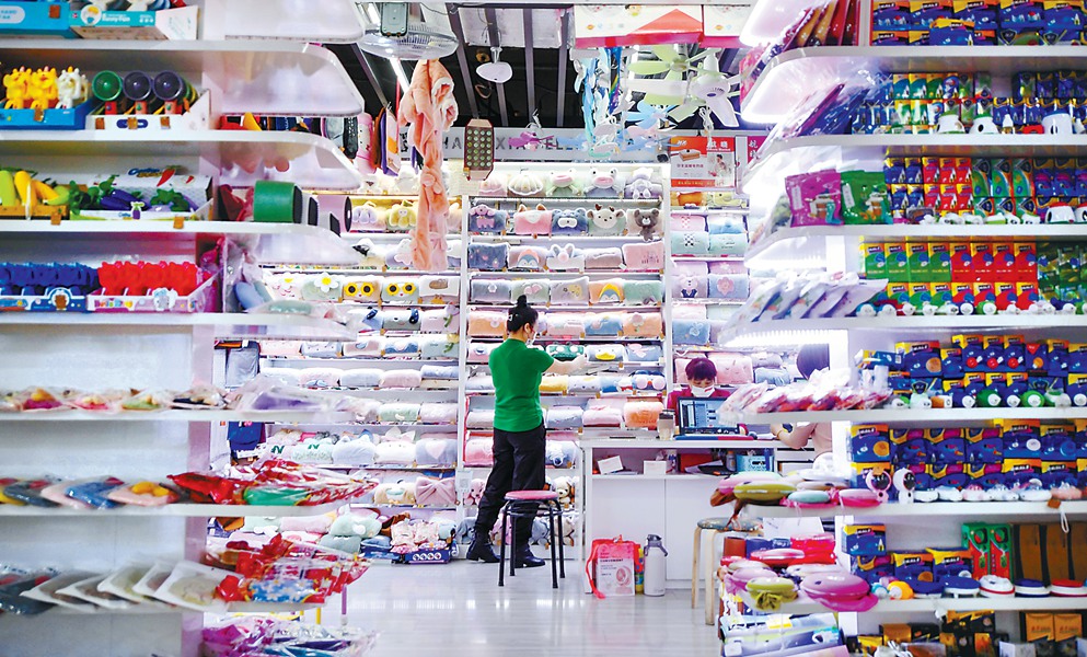 浙江义乌国际商贸城四区“亲霞”针织店铺里,老板周垚忠一大早就忙个不停。