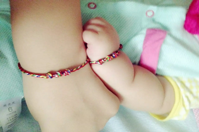 在端午这一天,各家大人起床后会在孩子手腕、脚腕、脖子上拴五色线,祈求小孩健康成长。