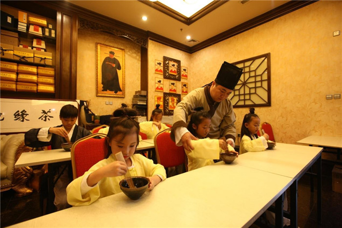 谷雨时节采制的春茶称为“谷雨茶”,又叫“二春茶”。开封市一位茶艺爱好者正在教孩子们用传承千年的宋式茶道制作一盏香气四溢的美味春茶。