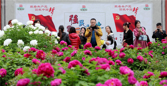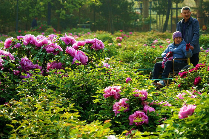 谷雨时节,郑州市中原区一对相濡以沫的老夫妻走出家门一睹牡丹芳容,陶醉在这满园春色中。