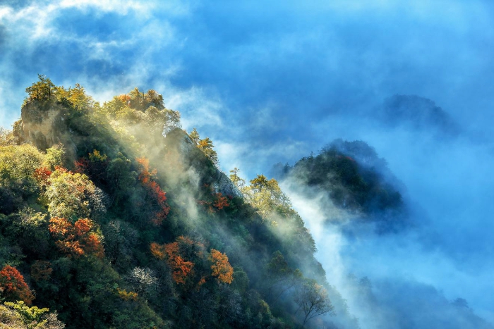 “霜风随意染层峦,万紫千红落眼难。”深秋的山林,热情奔放的红叶如霞似锦、五彩斑斓,云雾缭绕下宛如仙境。(洛阳、郑州、信阳、商丘、周口、鹤壁、新乡、平顶山、焦作、驻马店市纪委监察委)
