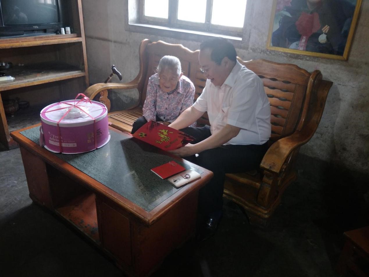 淇县县委书记王永青看望95岁的全国劳动模范----靳月英,为她送上生日蛋糕、佩戴党员徽章,号召全县党员干部学习劳模精神,传承优良传统