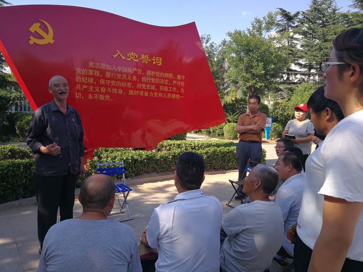 山城区山城路街道办事处优秀老党员为社区居民讲党章、说政策、谈感受,用上党课的方式发挥老党员余热
