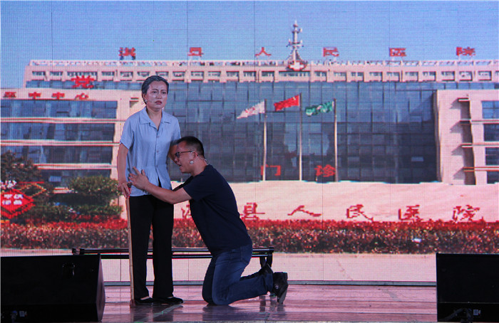 淇县人民医院职工以感情充沛的表演,引来现场观众对剧中贪官的阵阵叹息。(摄影:李华民)