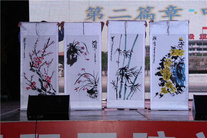 千百年来,梅兰竹菊“四君子”以其清雅淡泊的品质,作为人格力量、道德情操和清廉文化的象征,被世人所吟诵。在廉政文化活动现场,书画老师以“君子之品·风清气正”为主题,以弘扬清廉文化为切入点,将梅兰竹菊等传统书画题材通过绘画、书法等表现形式,把传统艺术与清廉文化相结合,传承传统文化,倡树清风正气,陶冶党员干部情操,起到内化于心、外化于形、润物无声的宣传教育效果。(摄影:李华民)