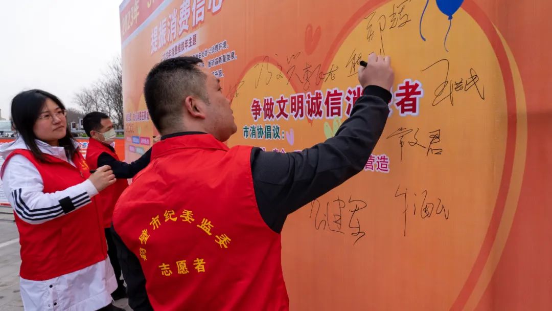 3月15日,市纪委监委组织开展“消费者保护日”志愿服务活动,为消费者现场提供“零距离”法律咨询服务,提高居民维权意识。(机关文明办 王新媛)