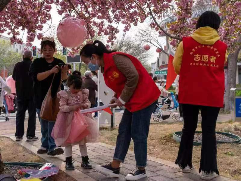 4月2日,市纪委监委组织开展“鹤飞樱舞,志愿有我”公益志愿服务活动,身着红色志愿服的纪检监察干部向游客宣传文明赏樱小常识,介绍游玩景点及路线,成为樱花大道上一道亮丽的风景线。(机关文明办 王新媛)