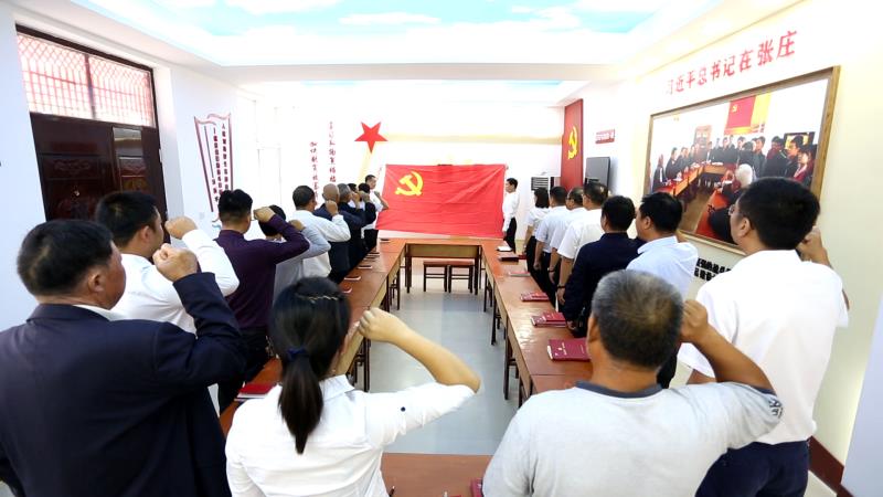 5月9日,河南省兰考县开展“支部连支部”“5+N”主题党日活动。图为该县党员干部在焦裕禄治沙首试地东坝头镇张庄村重温入党誓词。张北 摄
