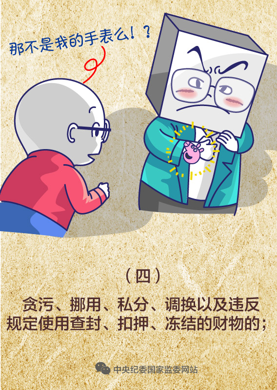 (四)贪污、挪用、私分、调换以及违反规定使用查封、扣押、冻结的财物的;