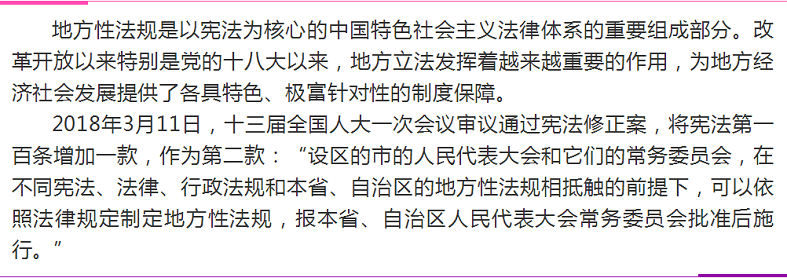 2018年3月11日,十三届全国人大一次会议审议通过《中华人民共和国宪法修正案》,宪法第一百条增加一款,作为第二款:“设区的市的人民代表大会和它们的常务委员会,在不同宪法、法律、行政法规和本省、自治区的地方性法规相抵触的前提下,可以依照法律规定制定地方性法规,报本省、自治区人民代表大会常务委员会批准后施行。”为什么要增加设区的市制定地方性法规的条款?有何重大意义?小栋今天带你一起好好学习。
