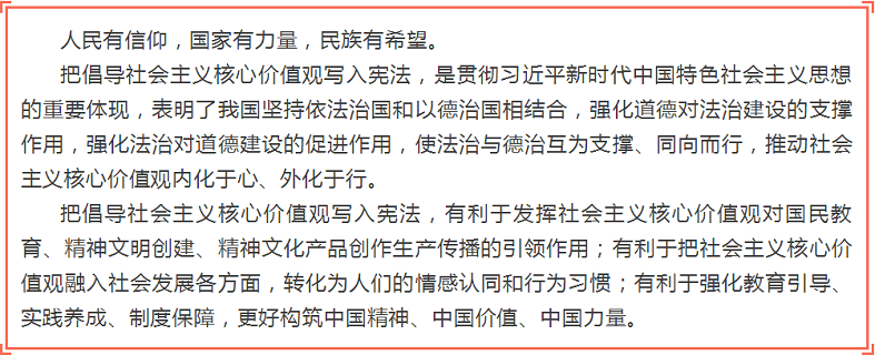 十三届全国人大一次会议通过的宪法修正案,将宪法第二十四条第二款中“国家提倡爱祖国、爱人民、爱劳动、爱科学、爱社会主义的公德”,修改为“国家倡导社会主义核心价值观,提倡爱祖国、爱人民、爱劳动、爱科学、爱社会主义的公德”。为什么要将“国家倡导社会主义核心价值观”写入宪法?有什么重大意义?小栋今天带你一起好好学习。