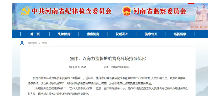 省纪委监委网站丨焦作:以有力监督护航营商环境持续优化