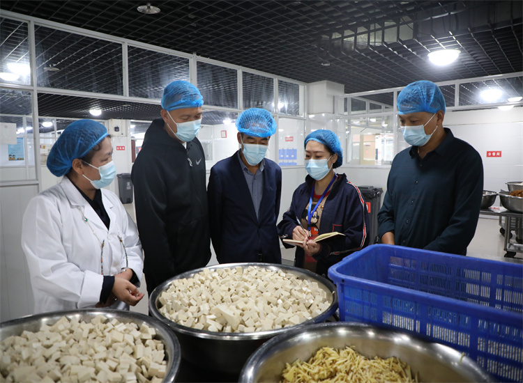 祥符区纪委监委紧紧围绕餐饮经营许可证、食品加工制作管理、食品留样等方面内容到区属中小学开展监督检查,严格监管供餐质量,督促相关职能部门加强学校食品安全运营管理。图为该区纪委监委工作人员在区第二实验中学现场查看学生餐制作情况。(田小盼 摄)