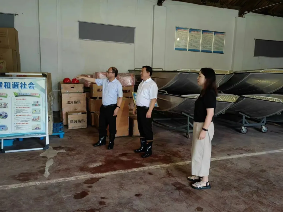 7月15日,召陵区纪委监委第三监督检查室联合派驻第五纪检监察组到区应急物资储备库查看防汛应急物资储备情况。