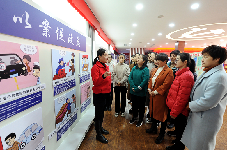 在“廉政漫画”展馆中,共展出原创漫画作品100余幅,分为以案促改、党纪条规、基层减负、阳光漯河等11个专题,涵盖了监督检查、审查调查、党风廉政建设、廉政宣传教育、巡视巡察等工作。