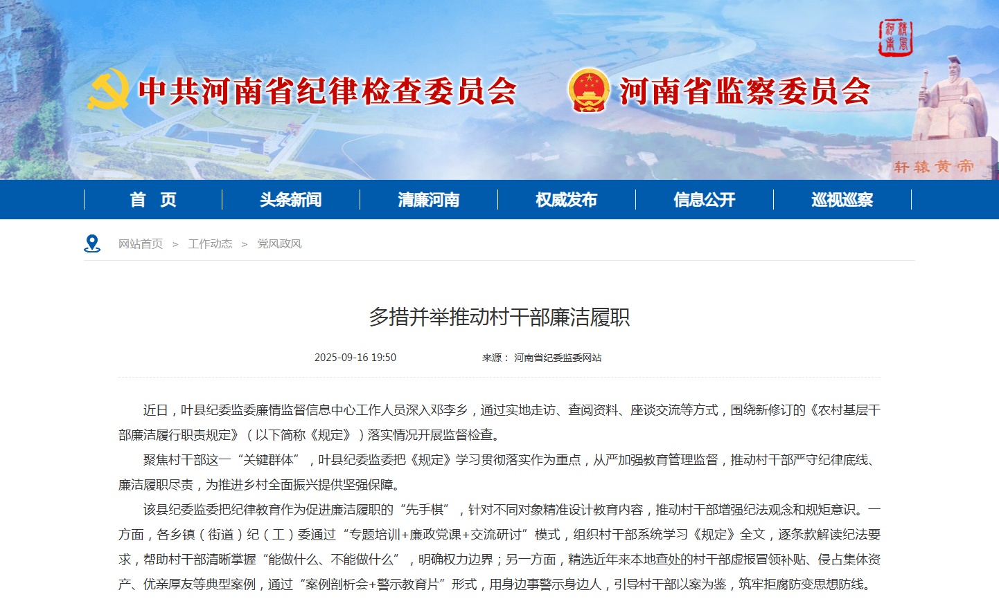聚焦村干部这一“关键群体”,叶县纪委监委把《规定》学习贯彻落实作为重点,从严加强教育管理监督,推动村干部严守纪律底线、廉洁履职尽责,为推进乡村全面振兴提供坚强保障。