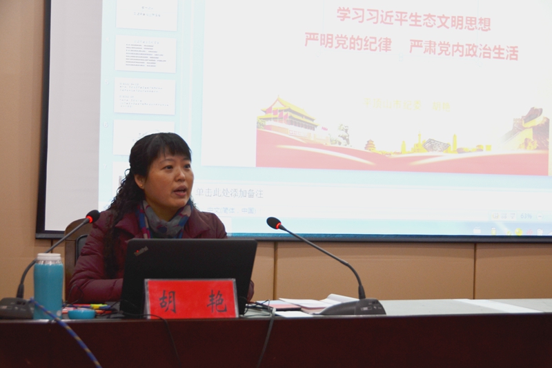 此次宣讲由平顶山市纪委副县级检查员、市委宣讲团成员胡艳同志主讲,以《学习习近平生态文明思想,严明党的纪律,严肃党内政治生活》为题,为该区党员干部在日常工作中严明政治纪律,严肃党内政治生活再次敲响警钟。