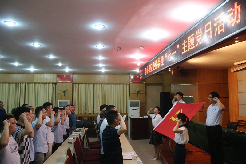 6月28日,鲁山县纪委监委开展迎“七一”主题党日活动,100多名纪检监察系统干部齐聚一堂,面向党旗重温入党誓词。这是鲁山县纪委监察委开展“七个一”活动庆“七一”的内容之一。