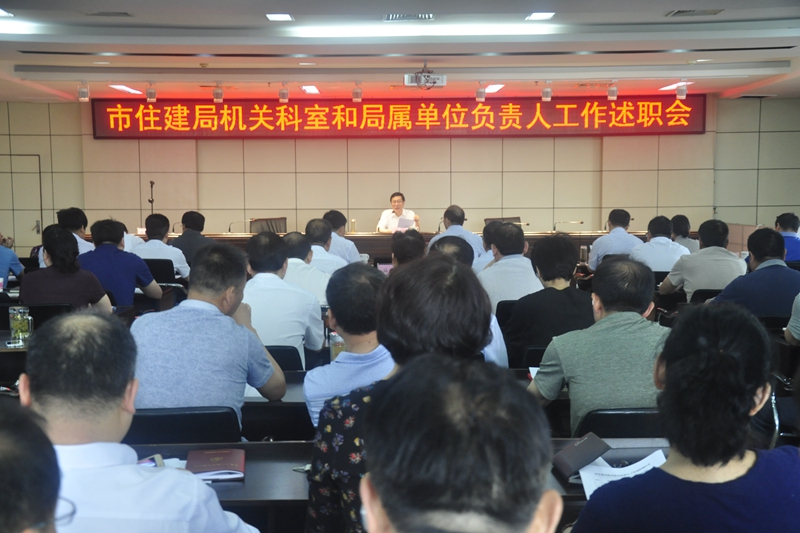 为激发党员干部干事创业的活力,压实责任,市住建局建立了月述职述廉制度。从6月起,每月的第一个星期六上午进行,20名机关科室负责人和25名局属单位党政负责人按照抽签顺序,采取脱稿形式,围绕落实全面从严治党责任、业务工作完成情况进行述职述廉。当场评议出前3名和后3名,会后进行全局通报。