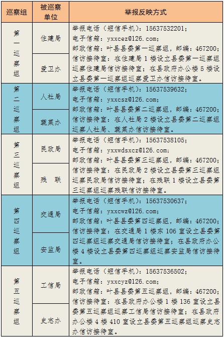 巡察期间,各巡察组均开通举报电话、短信手机,设置电子信箱、邮政信箱和信访接待室。