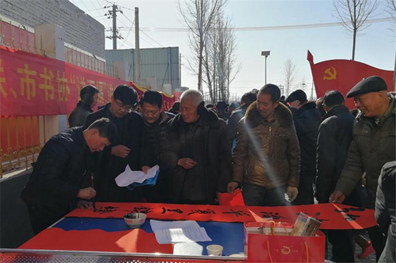“腊八过了就是年,送祝福,送春联”。腊八节到,在农历新年即将到来之际,鲁山县文联组织书法爱好者走进基层贫困村庄为群众义写春联,村庄里洋溢着浓浓的年味。(鲁山县纪委)