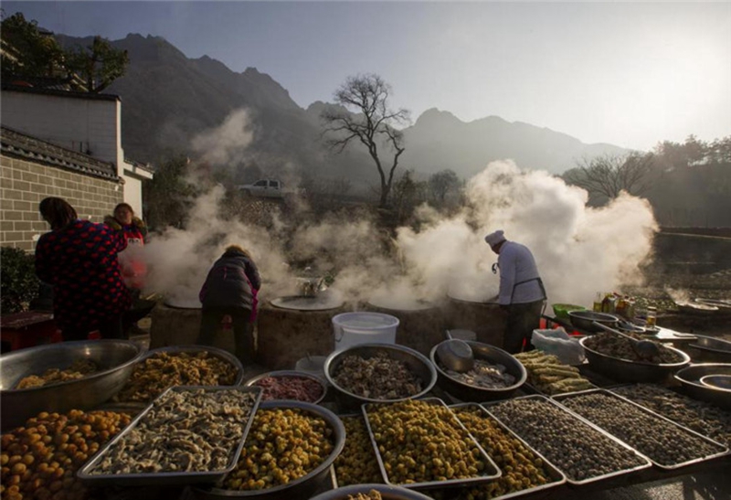 炸丸子、汆肉片、卷春卷……土灶、铁锅、大炒铲,腊八来临之际,年味愈溢愈浓,伴着升腾的香气渐渐笼罩了整个村庄。(商城县纪委)