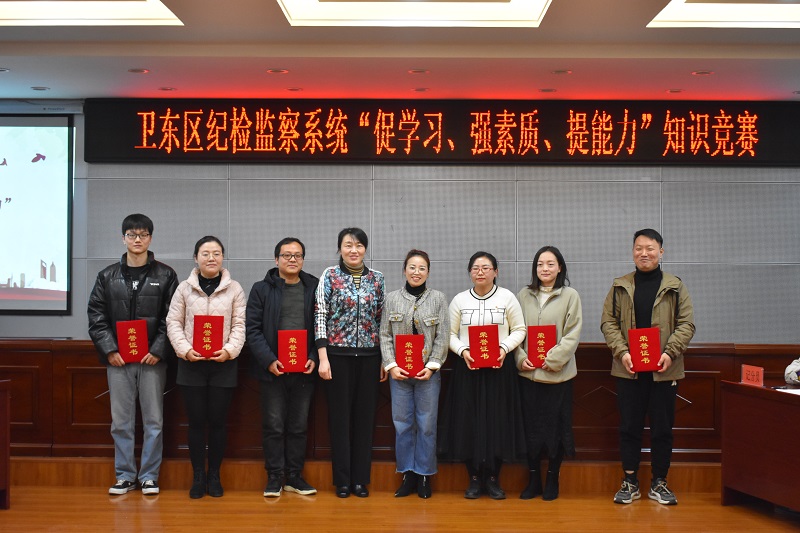 12月28日下午,全区纪检监察系统“促学习、强素质、提能力”知识竞赛在机关5楼会议室举行。区纪委常委耿卫华致辞并为获奖队伍颁发荣誉证书。