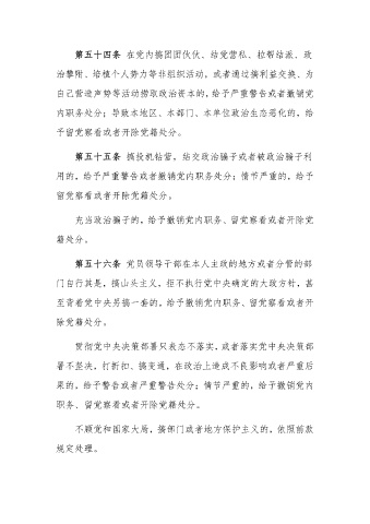 第五十四条 在党内搞团团伙伙、结党营私、拉帮结派、政