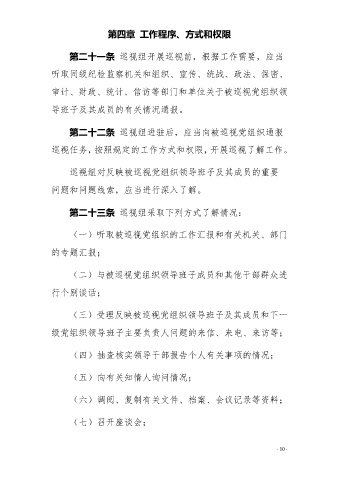 巡视任务,按照规定的工作方式和权限,开展巡视了解工作。