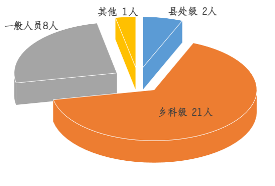 2021年前三季度,全市纪检监察机关共问责领导干部32人,其中,县处级2人、乡科级21人、一般干部8人、其他人员1人。乡科级及以上占比71.9%。