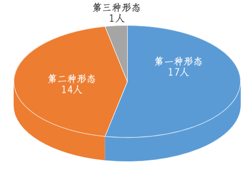 从“四种形态”应用上看,运用第一种形态17人,第二种形态14人,第三种形态1人,分别占53.1%、43.6%、3.1%。