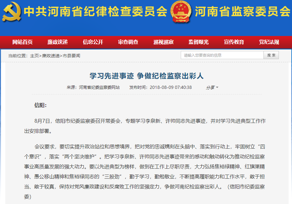 版权声明 主办:中共信阳市纪律检查委员会 信阳市监察委员会