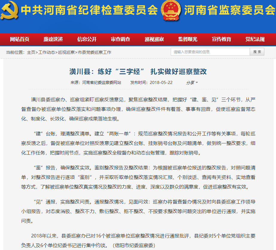 【省纪委网站信息】潢川县:练好“三字经” 扎实做好巡察整改
