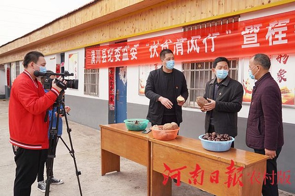 据悉,潢川县纪委监委帮扶全县1个贫困村,20个非贫困村,21名扶贫工作队长和1名驻村书记奋战在脱贫攻坚一线。为保障贫困户稳步脱贫,县纪委监委积极履行脱贫攻坚主体责任,积极排查已脱贫户是否受疫情影响存在返贫风险。全面摸排后,联合县融媒体中心,开展“扶贫清风行”系列活动,扶贫干部纷纷当起“带货主播”、“商超联系人”为贫困户卖货,消除疫情带来的影响。