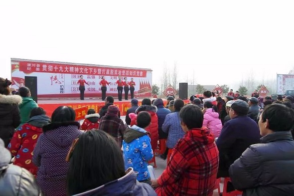 12月30日,在新的一年到来之际,潢川县纪委组织开展贯彻十九大精神文化下乡暨打赢脱贫攻坚战知识竞赛,张集乡檀树村文化广场上分外热闹。听说村里来了艺术团,还有有奖问答,村民们早早地来到了活动现场。冬日的暖阳和村民们脸上的笑容赶走了微风带来的寒意。