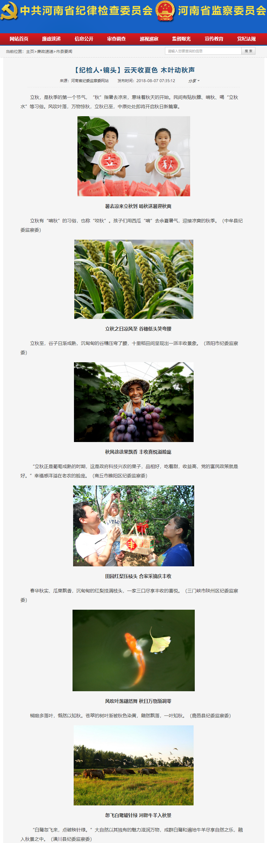 【省纪委网站要闻】【纪检人·镜头】云天收夏色 木叶动秋声
