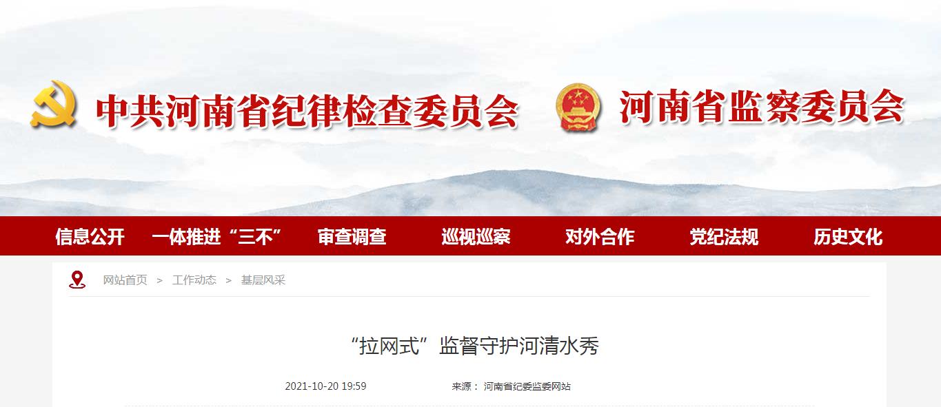 10月20日,河南省纪委监委网站以《“拉网式”监督守护河清水秀》为题,对我县纪委监委压紧压实基层党委政府和县直相关职能部门监管职责,建立联席会议制度,形成监管闭环,凝聚合力;统筹推进“室组地”联动工作机制,成立专项监督检查组,开展“拉网式”专项监督检查,推动全县非法采砂问题治理工作长治长效的典型做法予以报道。